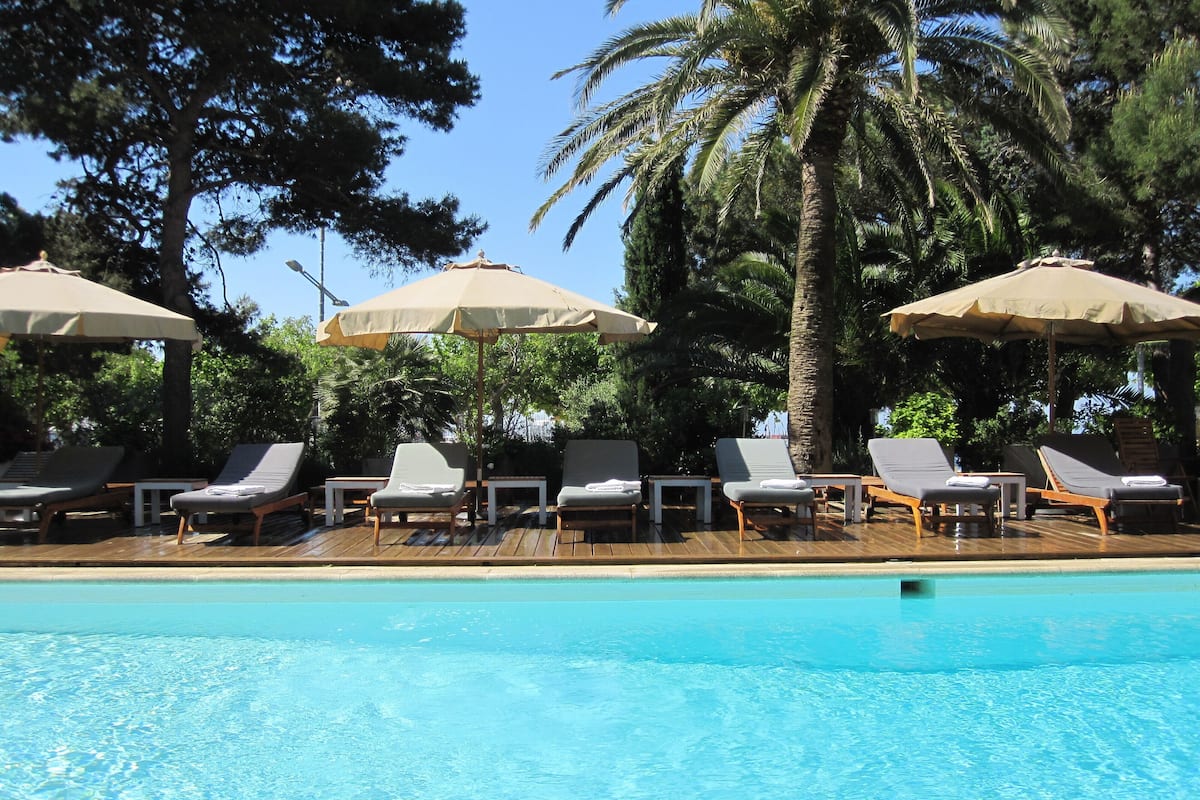 When you stay at this beach hotel you can enjoy umbrellas and sun loungers.