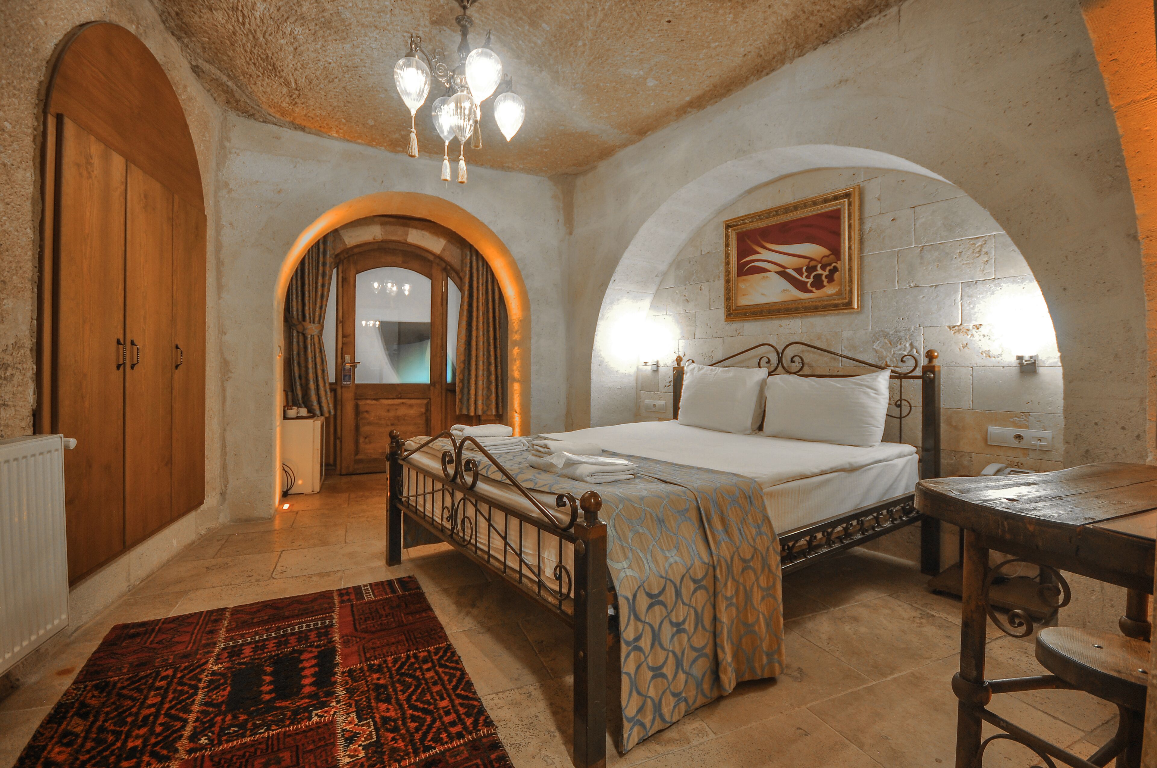 The hotel is located in the heart of Goreme, just 1-2 min walk to one of the main streets where all the restaurants, taxis, shops, tours are located. The hotel manager, staff and family are warm and welcoming and took care to address every question and need we had with expediency. We also got some great recommendations to see balloon viewing spots at sunrise - the hotel terrace is also a good spot!