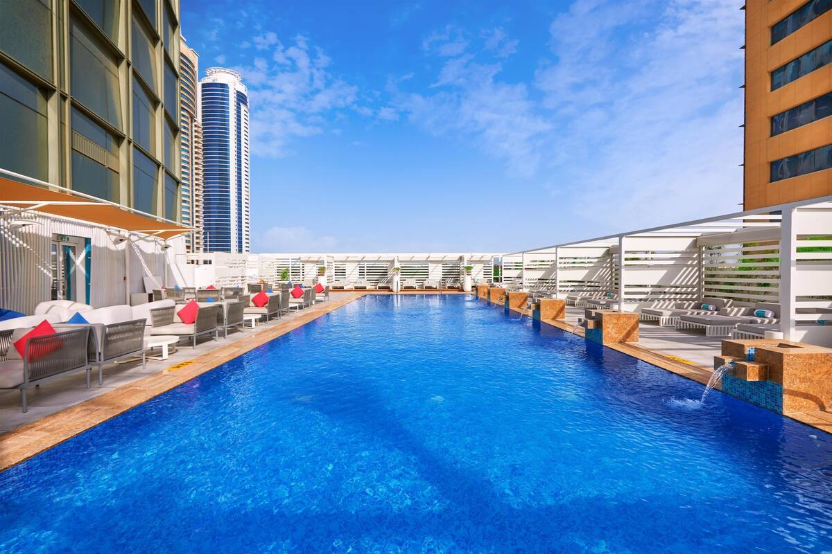At FIVE Palm Jumeirah Dubai, hit the private sand beach, dine onsite at Maiden Shanghai, or enjoy a drink at one of the resort's 2 poolside bars.